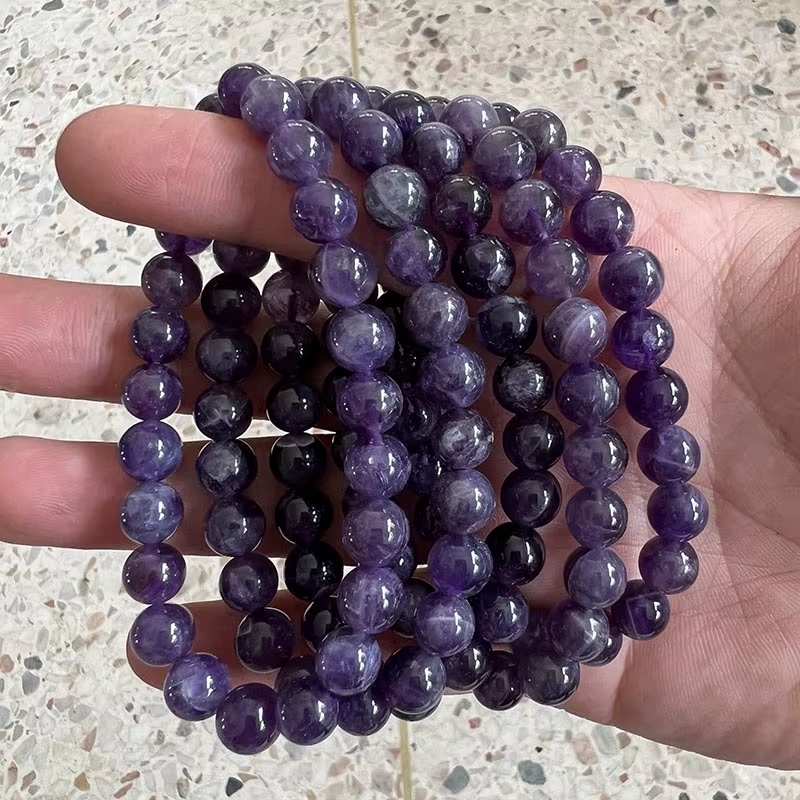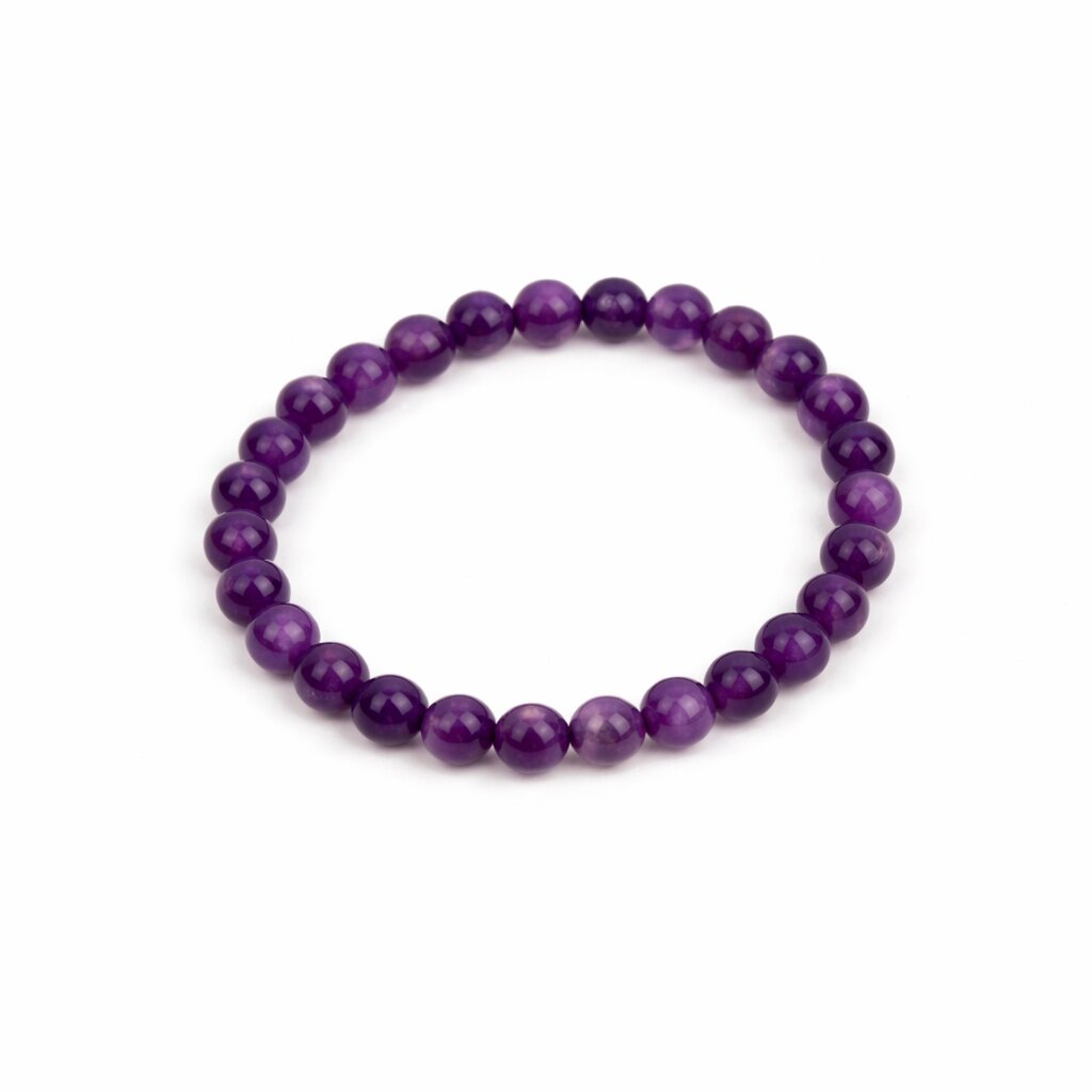 Ein poliertes, elegantes und ausgewogenes Armband aus natürlichem Amethyst begeistert mit seinem tiefen Violett und zarten Glanz. Dieser Schmuck verbindet Ästhetik mit spiritueller Harmonie und bringt Ruhe und Balance in den Alltag.