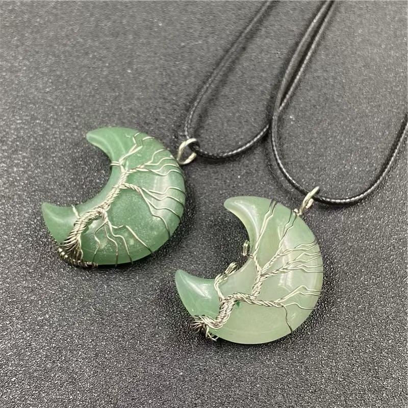 Grüner Aventurin Halbmond Anhänger. Anhänger mit einer Strass in Halbmondform.