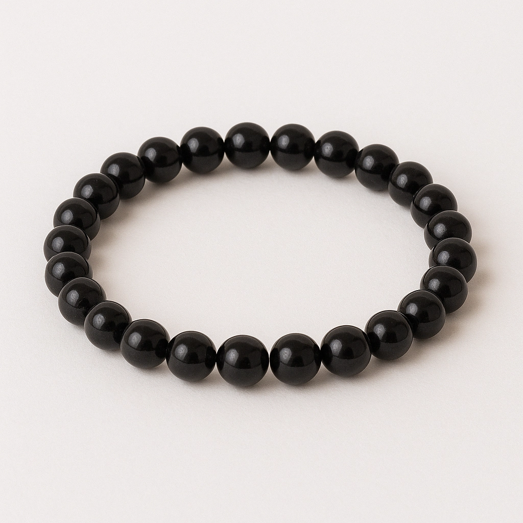 Ein poliertes, elegantes und ausgewogenes Armband aus natürlichem Obsidian verbindet klassische Schönheit mit spiritueller Tiefe. Schwarze, glänzende Perlen schaffen eine harmonische Komposition, die Ruhe, Stärke und subtile Eleganz ausstrahlt.