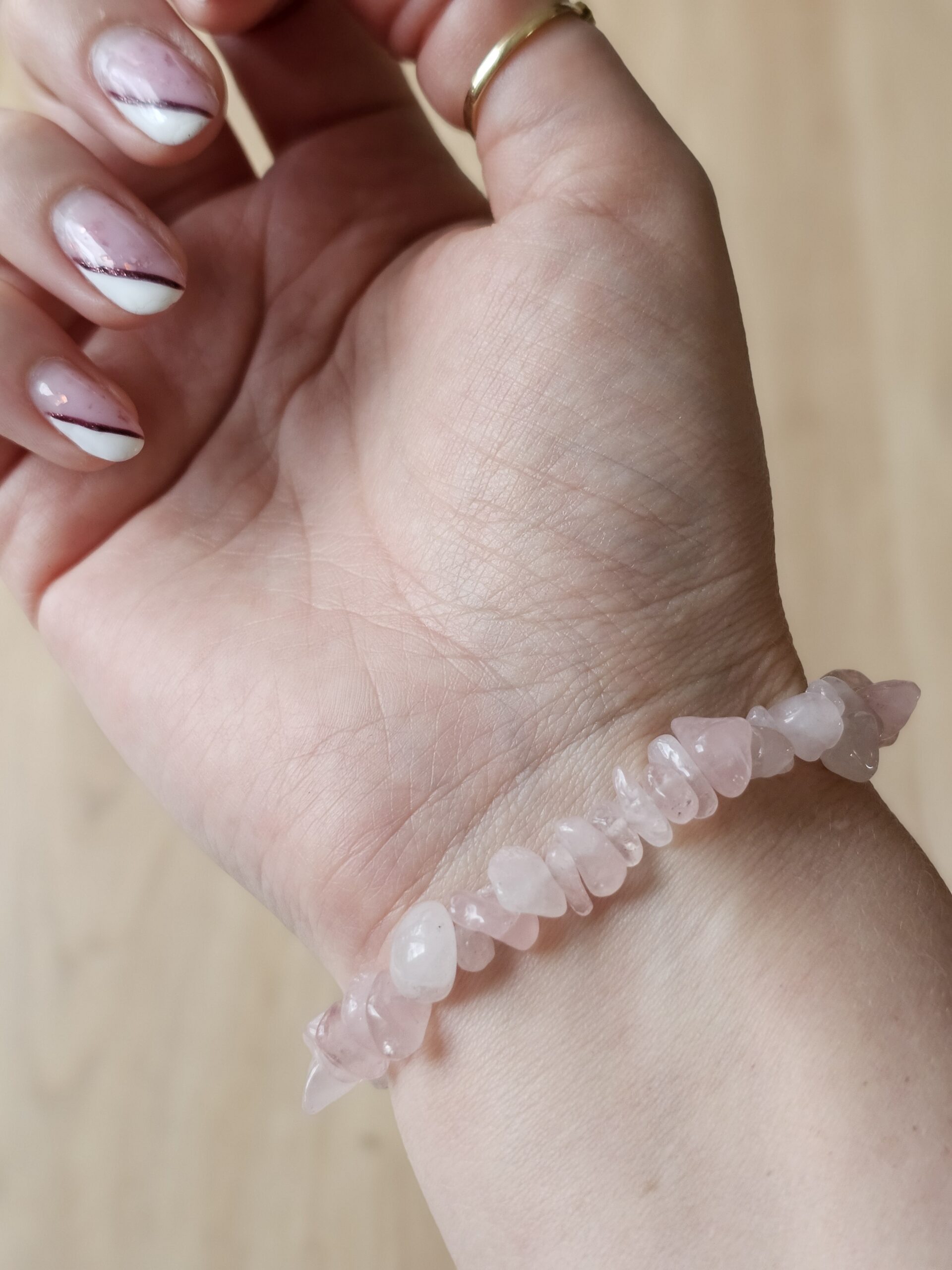 Rosenquarz hat mich schon immer angezogen, dieses Armband ist Gold