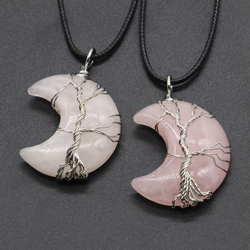 Rosenquarz Halbmond Anhänger – stilisiert – Liebe und Harmonie