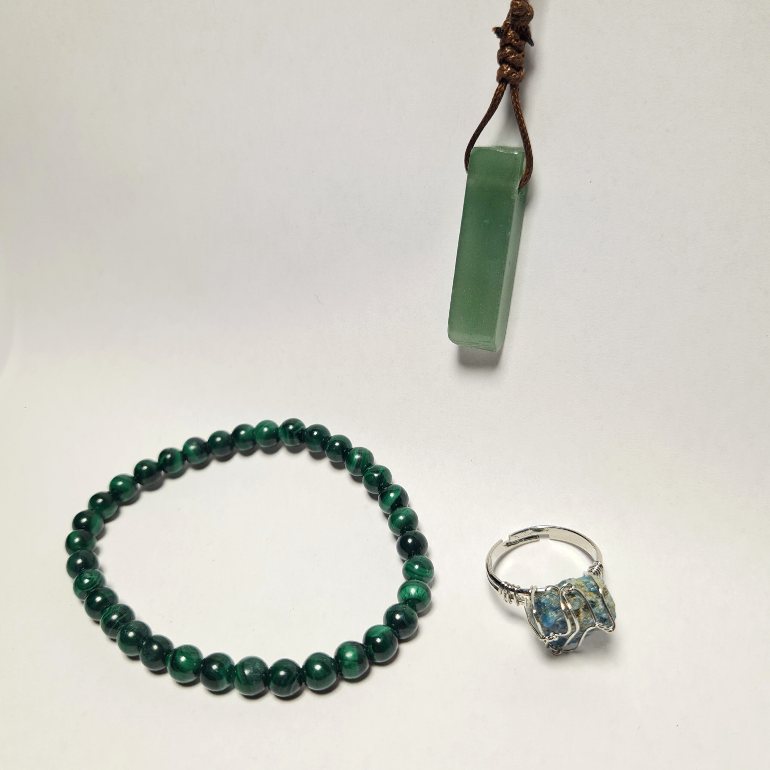 Aventurin, Malachit und Lapislazuli – Steine der Stabilität, des Mutes und der Intuition. Sie stärken das Selbstvertrauen und die Offenheit für positive Veränderungen. Ein idealer Set für den Stier, der Balance und inneren Frieden schätzt.