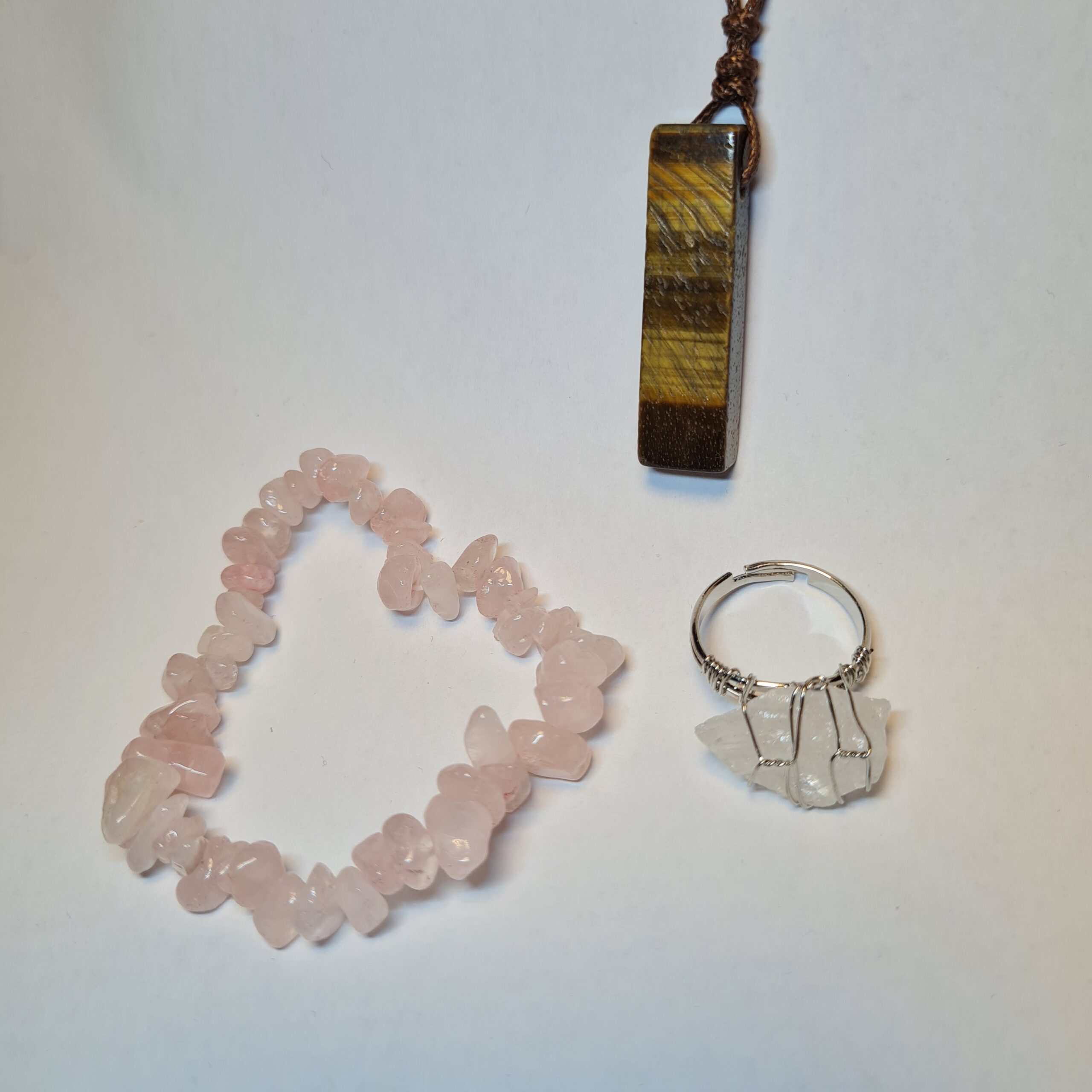 Tigerauge, Rosenquarz und Weißer Quarz – Steine der Stärke, Harmonie und Reinheit. Sie fördern Selbstvertrauen und warmherzige Beziehungen. Ein Set für den Löwen, der vor Energie und innerer Kraft strahlt.