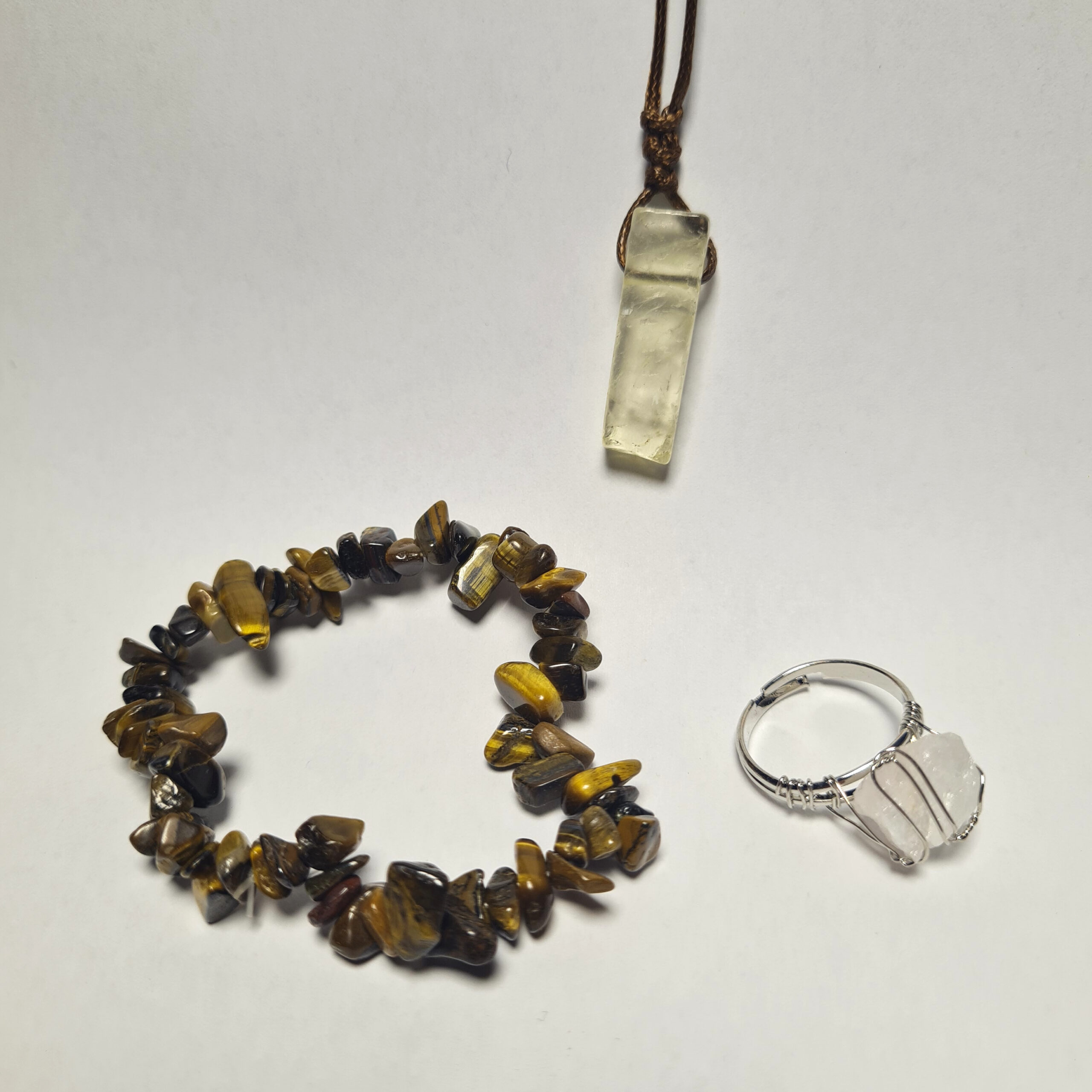 Citrin, Tigerauge, Weißer Quarz