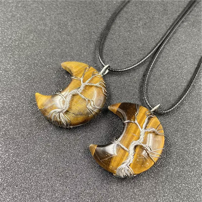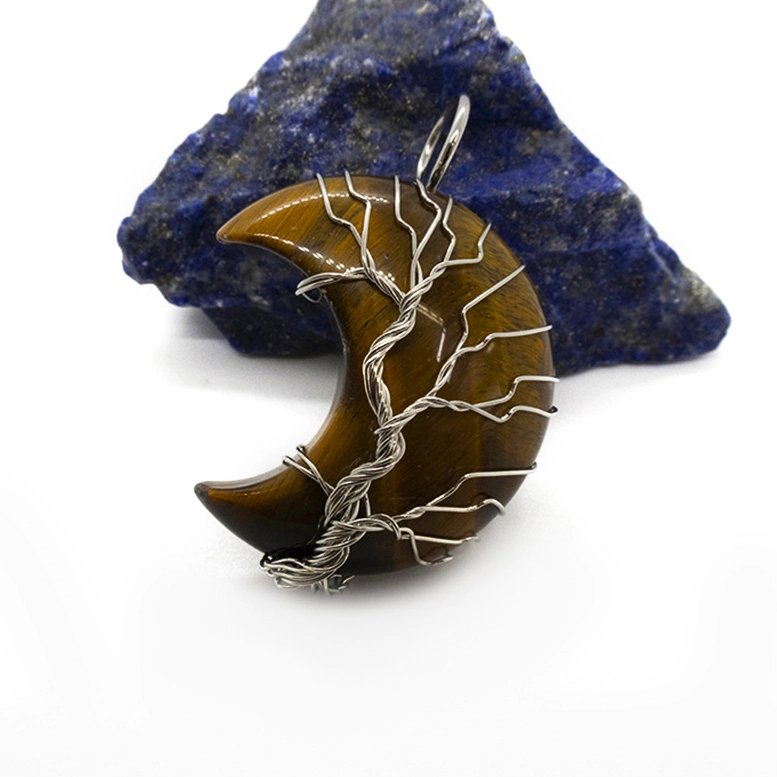 Tigerauge Halbmond Anhänger. Anhänger mit einer Strass in Halbmondform.