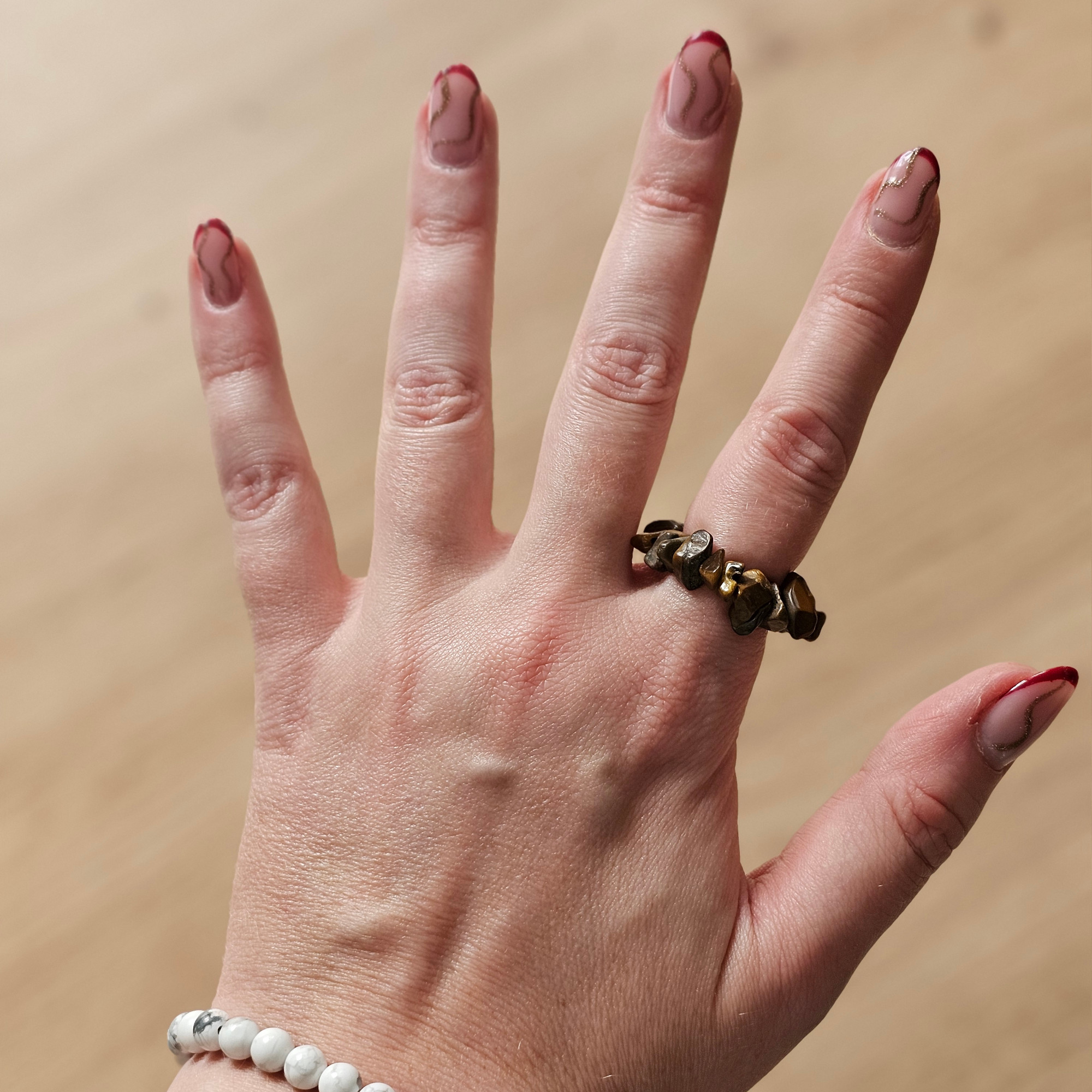- Art: Ring aus natürlichen Tigerauge-Splittern
